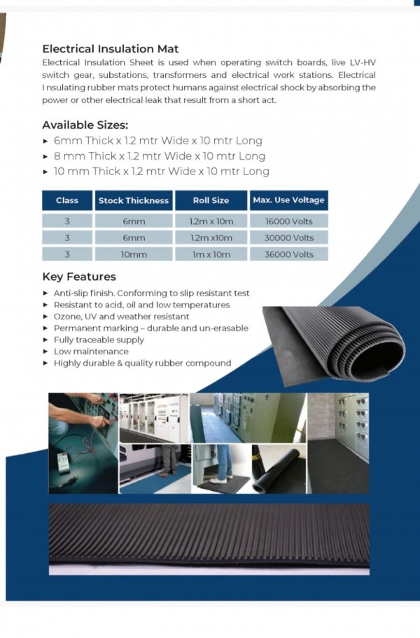 ELJI Electrical Insulation Mats are high voltage rubber mats are manufactured using high quality elastomer rubber in order to provide complete protection against electric shock due to earth faults.
