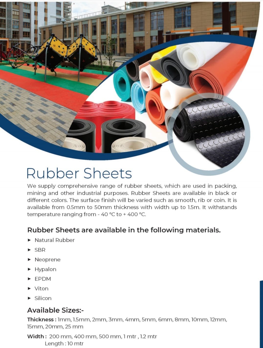 Our range of rubber sheets, including Neoprene, EPDM, NR/SBR, offers versatile solutions for various applications. These high-quality rubber sheets are engineered to provide excellent durability, flexibility, and resistance to a wide range of environmental factors. Whether you need weather-resistant EPDM sheets, oil-resistant Neoprene sheets, or general-purpose NR/SBR sheets, our products are designed to meet your specific needs, ensuring reliable performance in demanding conditions.